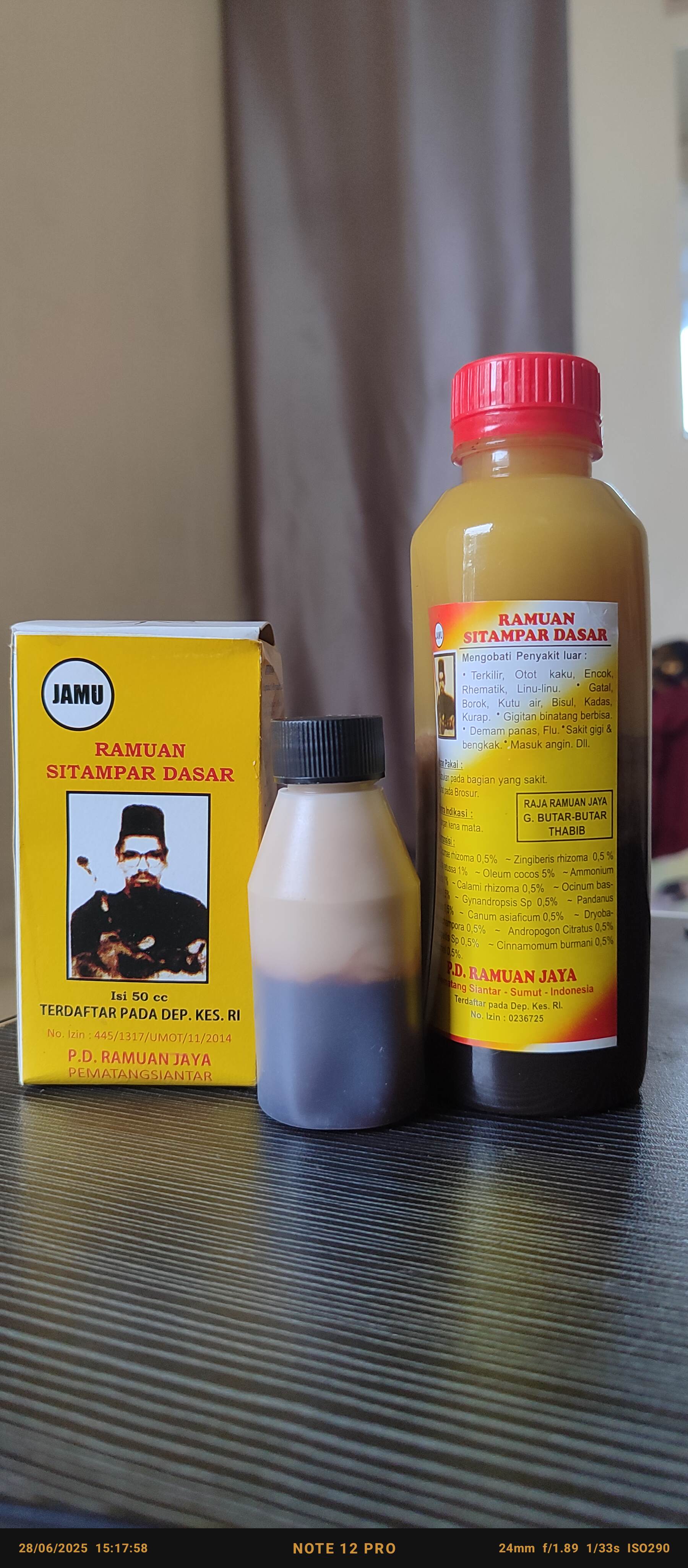 Minyak yang bisa digunakan untuk terkilir, otot kaku, encok, rematik, linu-linu, gatal, borok, kutu air, bisul, kadas, kurap, gigitan binatang berbisa, demam panas, flu, sakit gigi dan masuk angin
